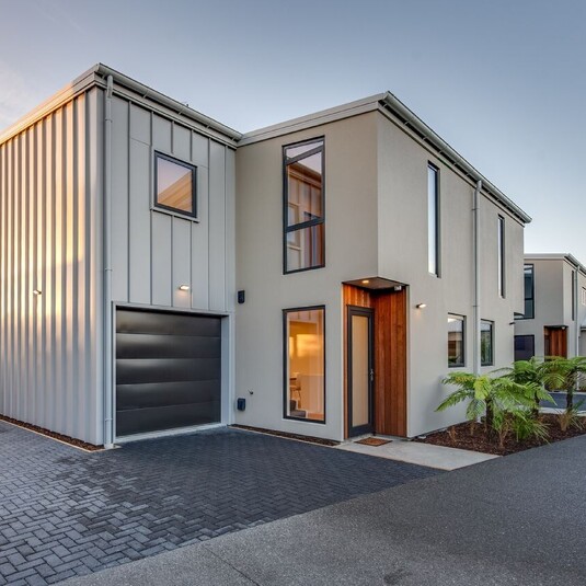 Five of these 132 sqm homes provide 3 bedrooms, 2.5 bathrooms, and garaging. One 91 sqm townhouse has two-bedroom configuration and off-street carpark.